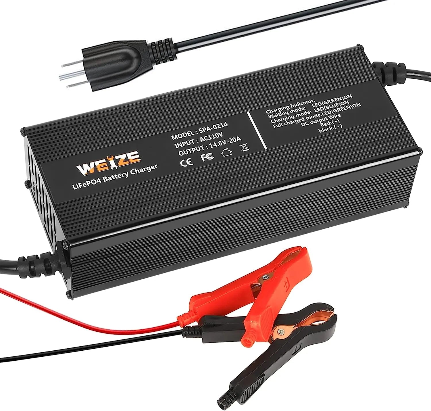 Elevate your power experience with the WEIZE Lithium Battery Smart Charger - a charger designed to fuel your adventures and amplify your energy. Take control of your 12V LiFePO4 batteries like never before!