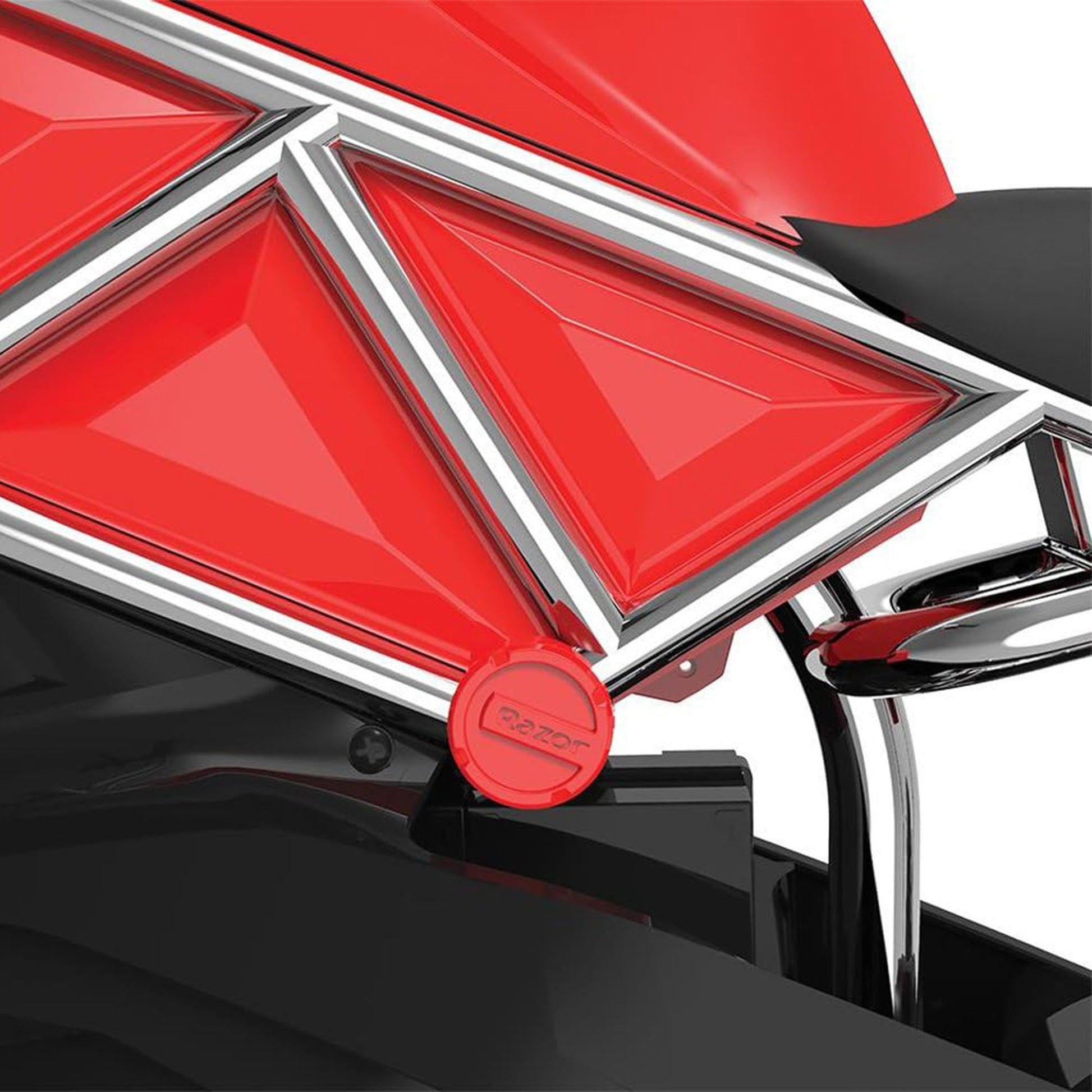Built for both form and function, the RSF350 features a trellis-frame chassis design with authentic street-bike-inspired styling, combining bold aesthetics with top-notch performance. Embark on thrilling rides reaching speeds of up to 14 MPH (22 km/h), experiencing the exhilaration of the electric bike like never before. Take command of the road with the hand-operated rear disc brake, providing precise stopping power when you need it most. Paired with pneumatic tires and custom 12-inch (305-mm), 3-spoke mag wheels, you'll glide effortlessly over any terrain with confidence. Equipped with a rechargeable 24V, or (2) 12V, sealed lead-acid battery system, enjoy up to 30 minutes of continuous ride time, ensuring you're always ready for your next adventure. Additional features include a double-crown fork for enhanced stability, shatter-resistant fairings for durability, and adjustable-angle, riser-style handlebars with soft rubber grips for optimal comfort on long rides. Plus, with a retractable kickstand, parking is a breeze wherever your journey takes you.